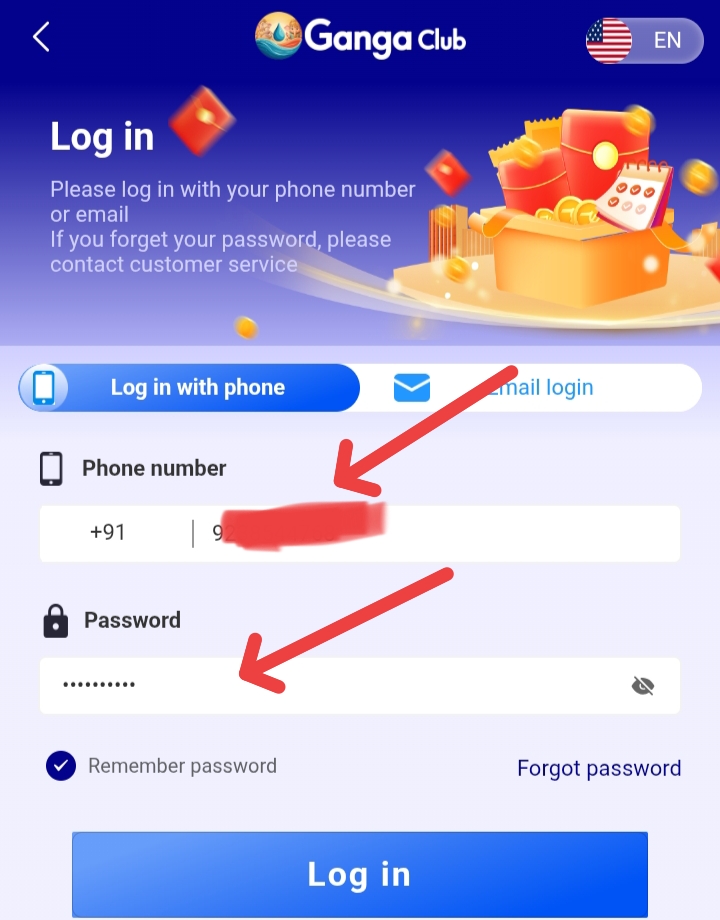 Login in With Phone Or Email Login Choose You First Time Register How Option Choosing Email Or Number Like Number Used Ganga Club Login Enter Phone Number And Password Tap Log In Done.